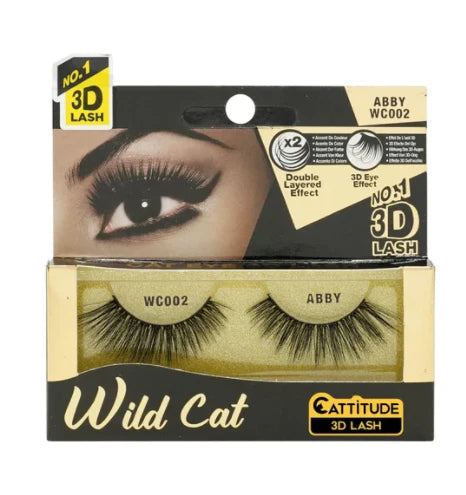 Indulge in luxury with Wild Cat 3D Lashes. The 3D layer adds length, volume, and glamour for an effortless allure. The soft, flexible band ensures comfortable wear while seamlessly blending with natural lashes. Reusable when carefully placed. Medium volume and elongated length with a slightly spiky, staggered lash style for a refined and exclusive look.